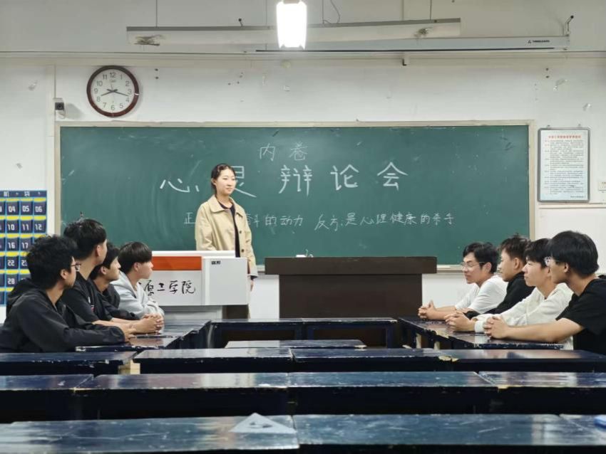 为深化学生心理健康教育,引导学生理性看待学业压力与成长竞争,2025年10月24日晚,自动化与电气工程学院于11号教学楼503组织了一场别开生面的“心灵辩论会”。本次活动以大学生密切关注的“内卷”现象为切入点,围绕“内卷是心理健康的动力还是杀手”这一辩题,展开了一场兼具思辨深度与心灵温度的对话。